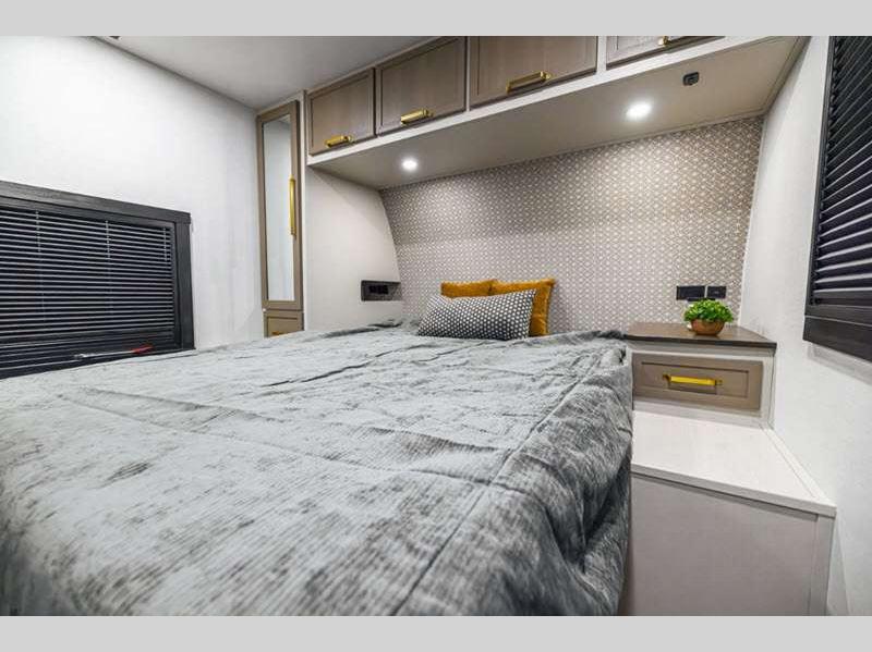 Sleeps 2 Slides 1 Length 24 ft 11 in Ext Width 8 ft Ext Height 11 ft 1 in Hitch Weight 595 lbs Dry Weight 4883 lbs Cargo Capacity 2712 lbs Fresh Water Capacity 45 gals Grey Water Capacity 60 gals Black Water Capacity 30 gals Available Beds Queen Refrigerator Type 12V Black Refrigerator Size 10 cu ft Cooktop Burners 3 Number of Awnings 1 Water Heater Type On Demand Tankless AC BTU 18000 btu Awning Info 16' with LED Lights Axle Count 2 Shower Type Standard Similar Floorplans