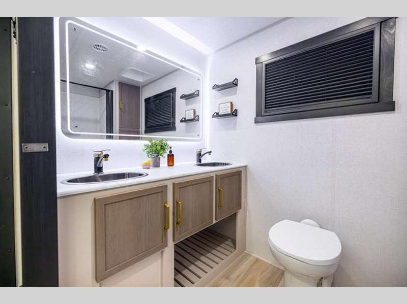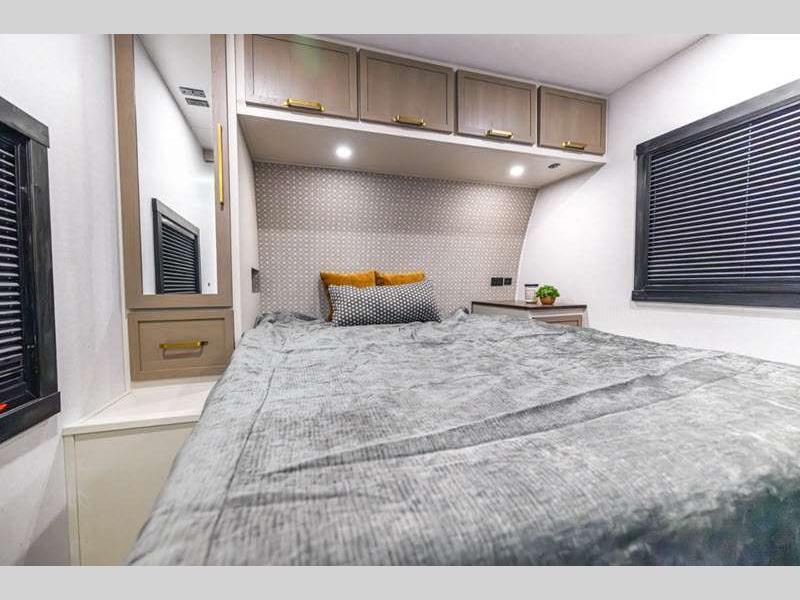 Sleeps 2 Slides 1 Length 24 ft Ext Width 8 ft Ext Height 10 ft 10 in Hitch Weight 785 lbs Dry Weight 5403 lbs Cargo Capacity 2382 lbs Fresh Water Capacity 49 gals Grey Water Capacity 62 gals Black Water Capacity 32 gals Available Beds Queen with Versa-Tilt Refrigerator Type 12V Black Refrigerator Size 10 cu ft Cooktop Burners 3 Shower Size 30" x 36" Number of Awnings 1 Water Heater Type Tankless AC BTU 15000 btu TV Info LR 40" LED Smart TV Awning Info 14' with LED Lights Axle Count 2 Shower Type Walk-In Shower Similar Floorplans