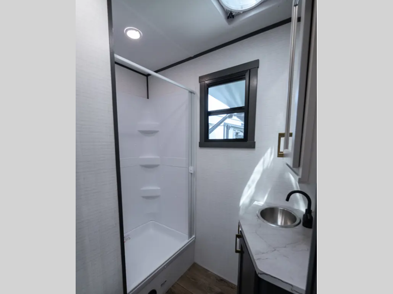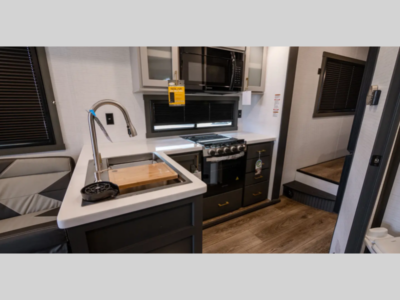 The exterior features a gel-coated fiberglass, a fully enclosed "Body-Armor" underbelly, and full LED rear taillights. The garage is spacious so that you can haul plenty of gear, and the wider interiors offer a comfortable living space. The Dexter EZ-Lube axles are the best in the business, and the MORryde CRE3000 suspension enhancement is going to make all roads smooth.